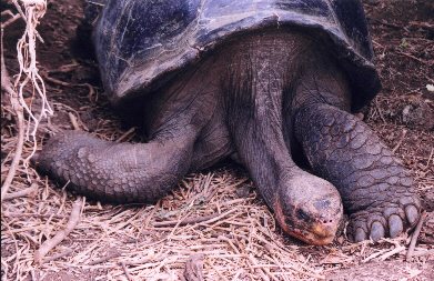 ![]() If you are a 300 pound tortoise who lives in "flat land" where it is humid and vegetation is abundant, and grows low to the ground like this at the Darwin Research Center on Santa Cruz, you can have short legs and neck. |