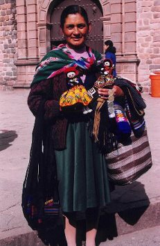 | So knowing what we do, what can we conclude about this woman who is standing in front of Iglesia Santo Domingo in Cuzco selling souvenirs? | ![]() |