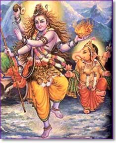 having four arms. It is Shiva's relationship with his wife, Parvati which brings him balance. Their union allows him to be an ascetic and a lover, but within the bounds of marriage. Parvati is consistently depicted with bare breasts and wearing a sacred thread. Bare breasts were considered a mark of divinity in ancient India and only those Goddesses who were exclusively divine may go about "sky clad", as it were. Clothes symbolized the body and earthly attachments whereas nudity was indicative of unfettered divinity. Shiva's relationship with Parvati is so strong that Shiva is sometimes represented as half man, half woman. His figure is split half way down the body, one half showing his body and the second half that of Parvati's. |